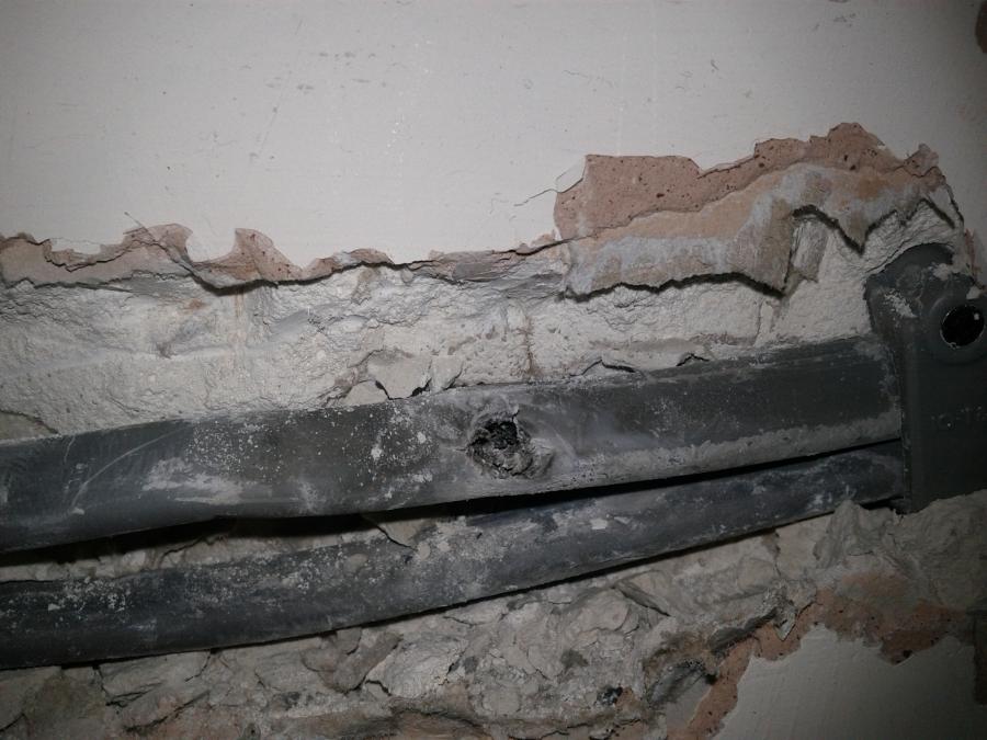 This photo shows the aftermath of a DIY mishap – a drill hole through a hidden cable. Accidental damage like this can cause serious electrical faults, tripping circuits, or even sparking dangerous fires. At Definitive Electrical, Electricians in Nottingham, we specialise in identifying and safely repairing issues like these.